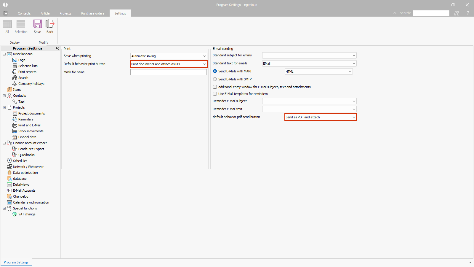 In the program settings, you can enable the option to automatically save an invoice as a PDF in the attachments when it is sent by email or printed.