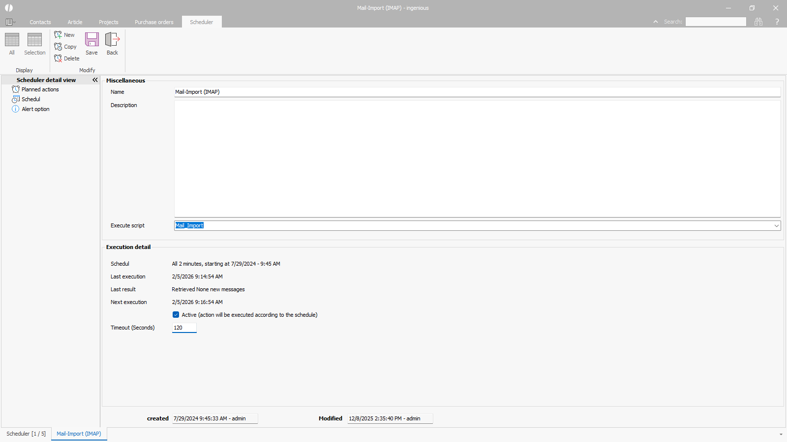 The scheduler is a separate module for the automatic, time-controlled execution of individual scripts.