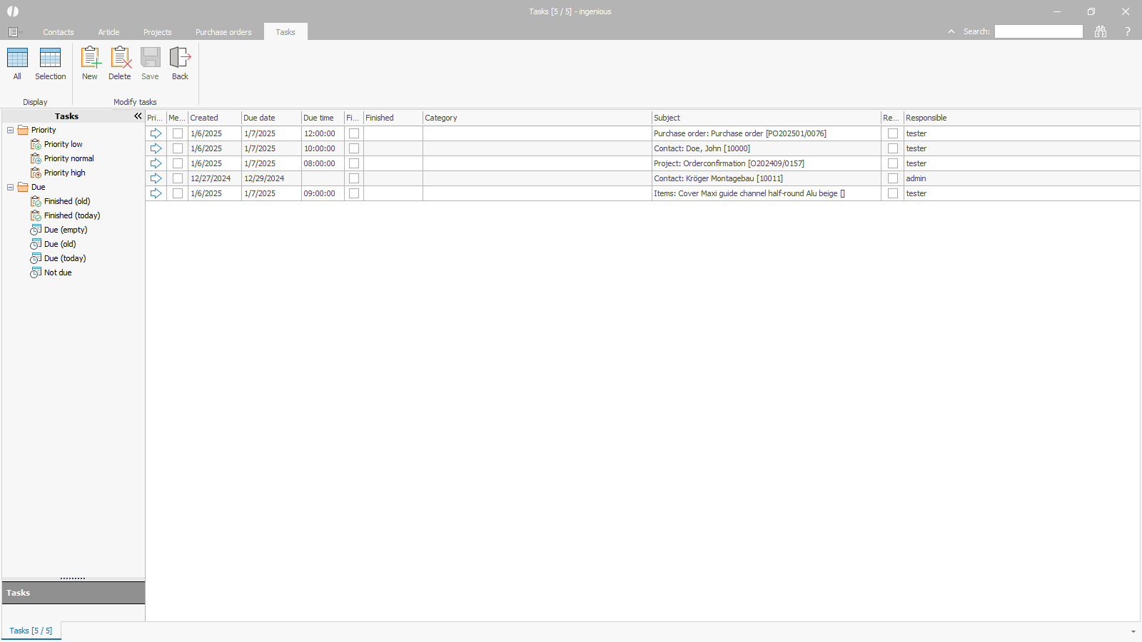In the task management, all tasks are displayed according to the filters set and the user rights.
