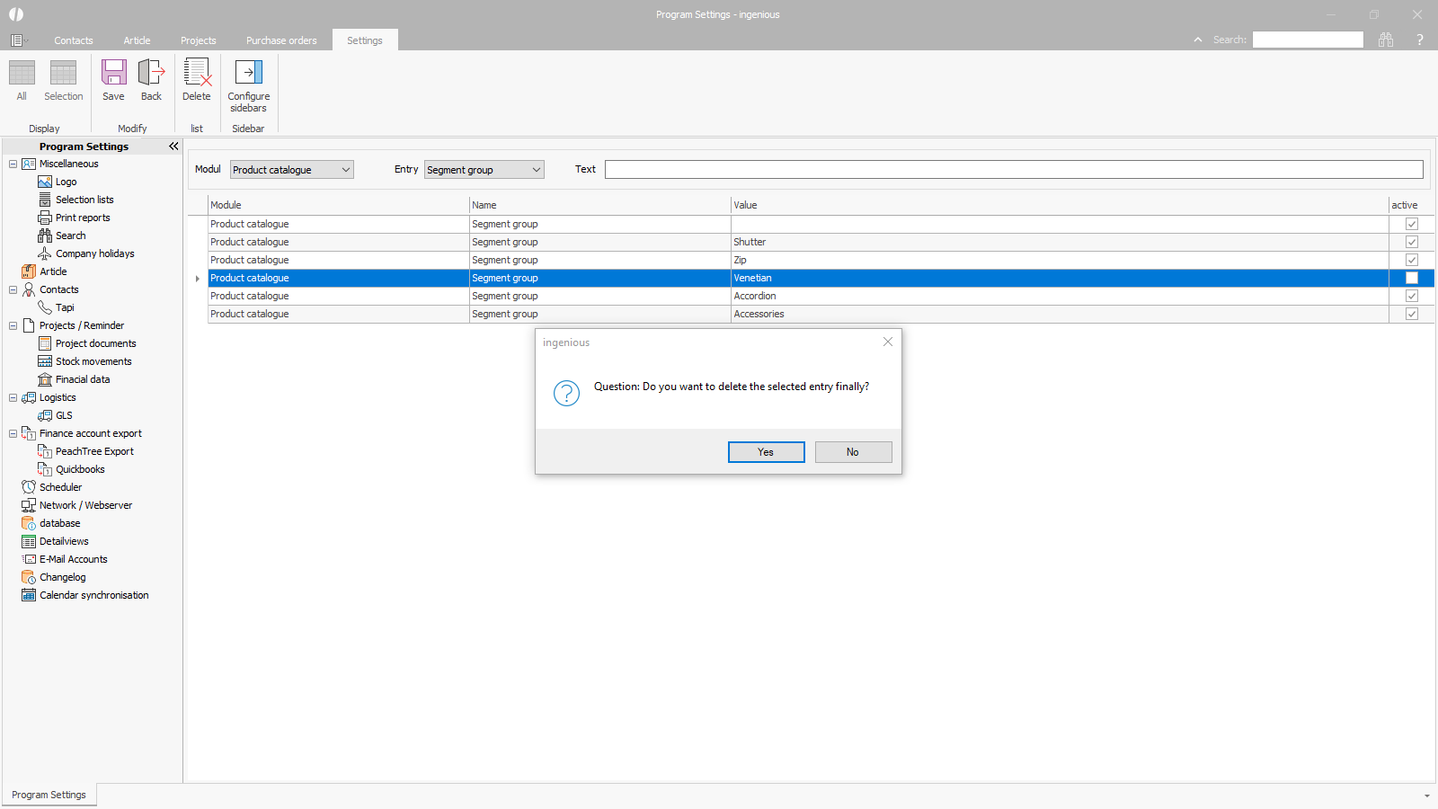 Via the button in the toolbar, a marked selection list entry can be deleted. With the confirmation of the security query, the entry is deleted ultimately.