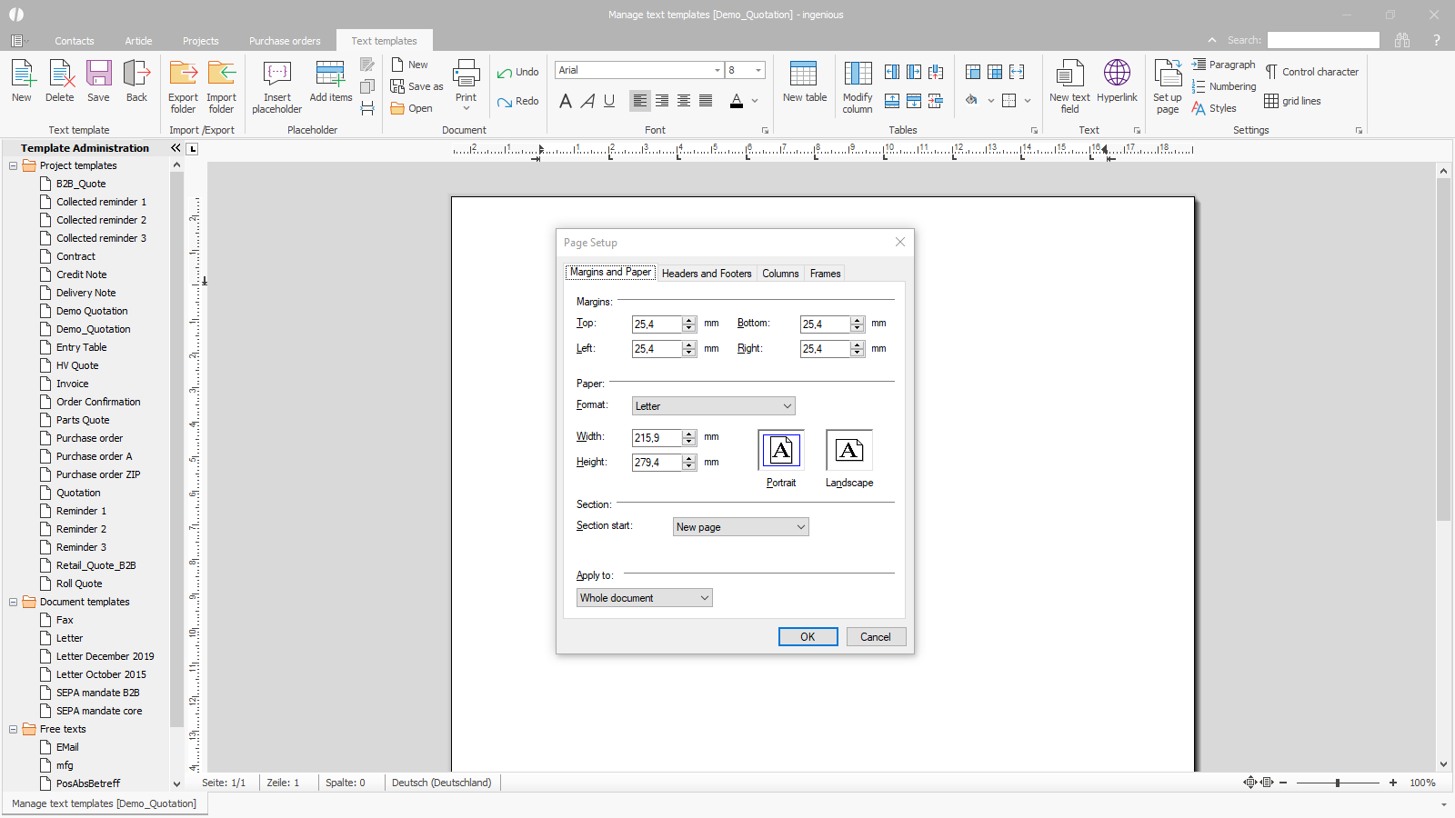 1. Depending on the output of the document (eg printing on letterhead or direct e-mail), text blocks (footer) and logos (letterhead) are inserted or hidden