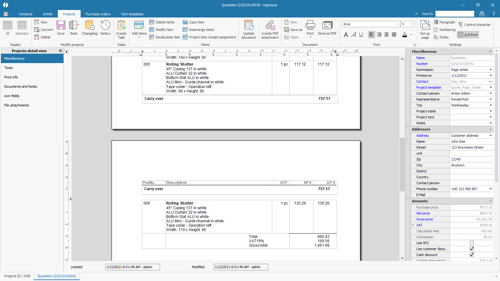The project templates contain all text components necessary for the  recording of a project document + individual texts and design elements according to the own company CIs.
