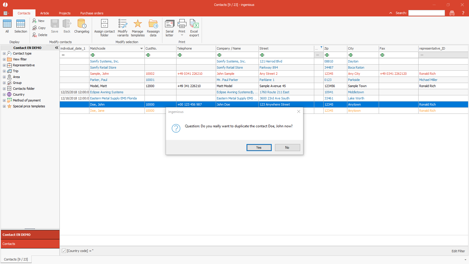 When a new contact should be created that details are similar to another contact data record, e.g. the financial data and classification, a copy of the existing contact can be created and modified.
