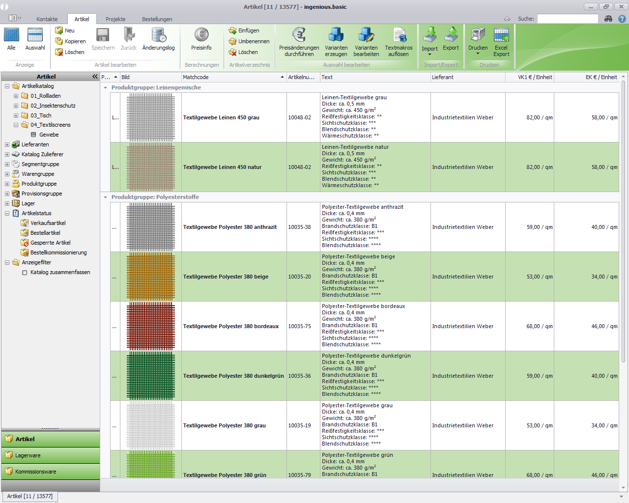 The product catalog in our inventory management system ingenious helps you to keep track. Your articles are optimally sorted via own directories, product groups and via the assignment to the respective suppliers. You can save all the details of each article in our software. In addition to descriptive texts, ordering parameters and prices, this also includes product illustrations, operating instructions and accessory links.